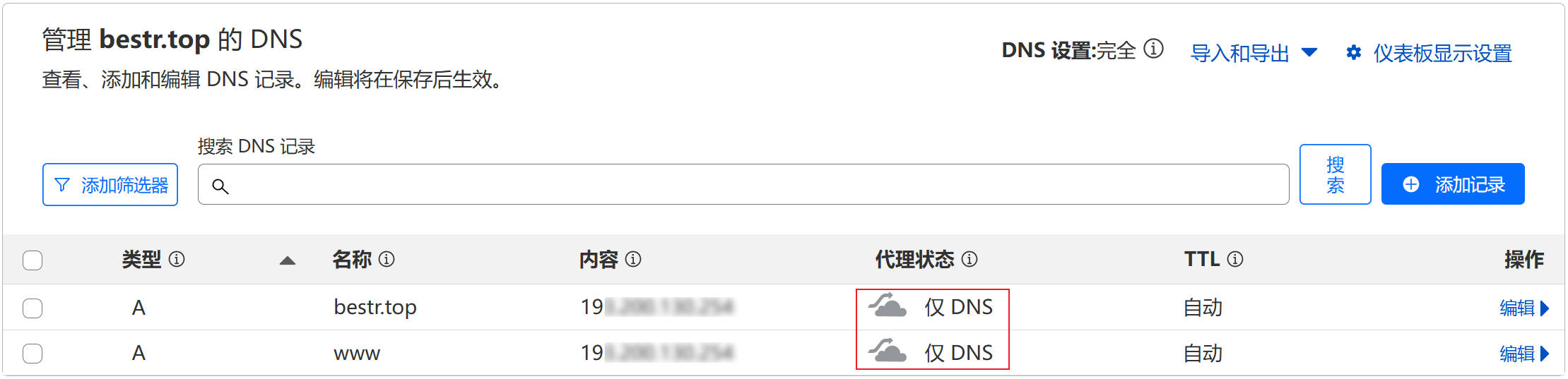Cloudflare管理域名的DNS